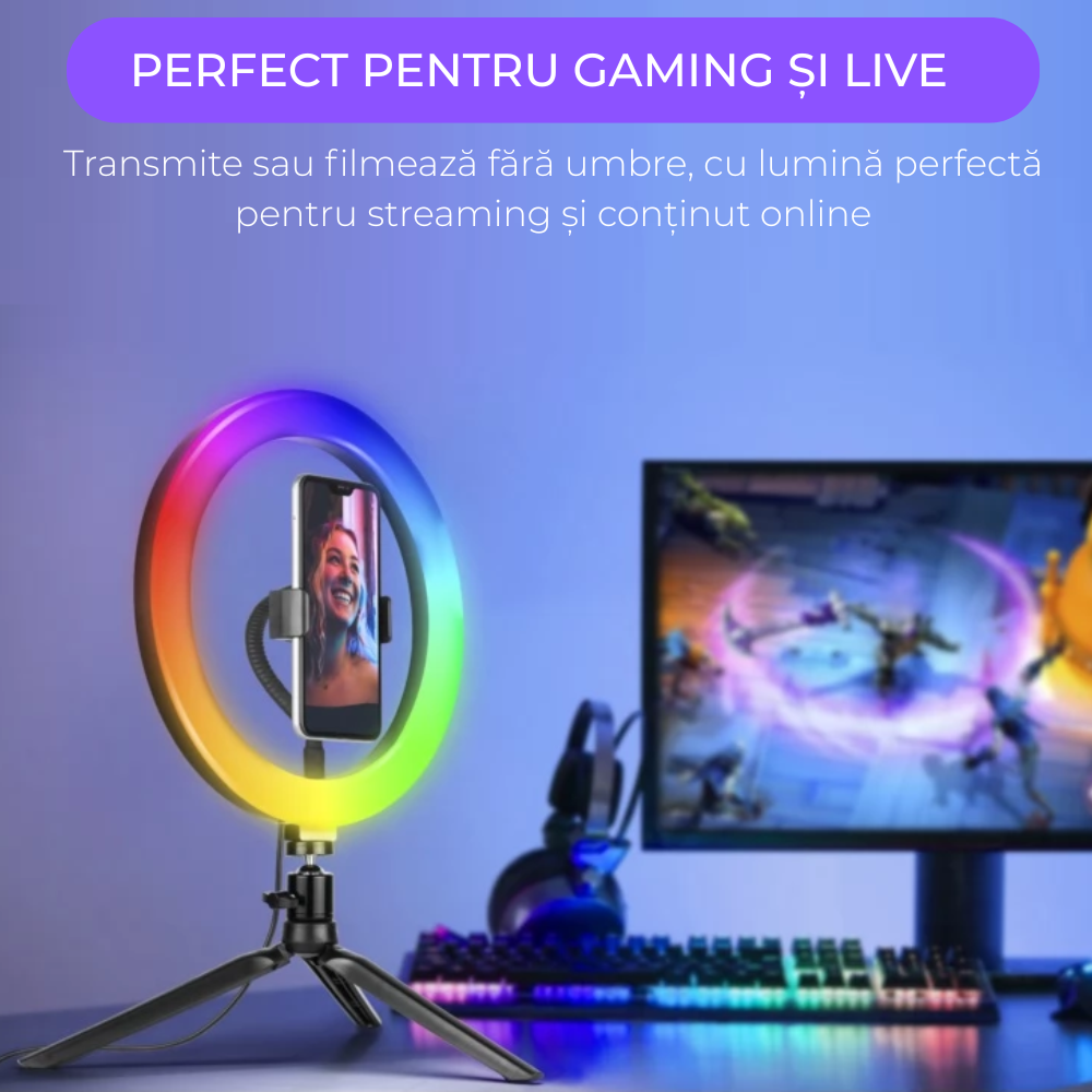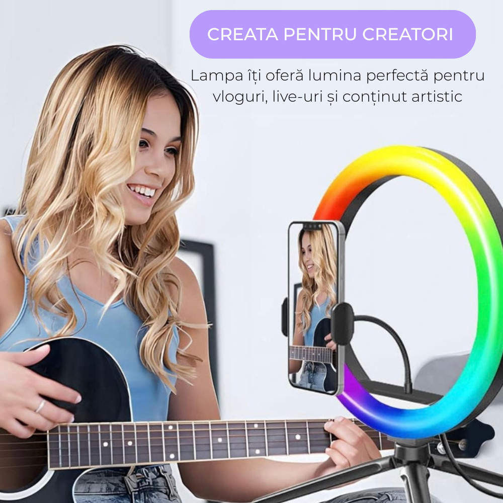 👉 Lampa Revose™ Ring Light 26 cm RGB este soluția completă pentru content de calitate, fotografii profesionale și un setup de studio chiar la tine acasă 🙌.