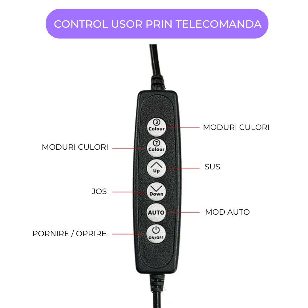 - Sursă de lumină: LED SMD RGB
