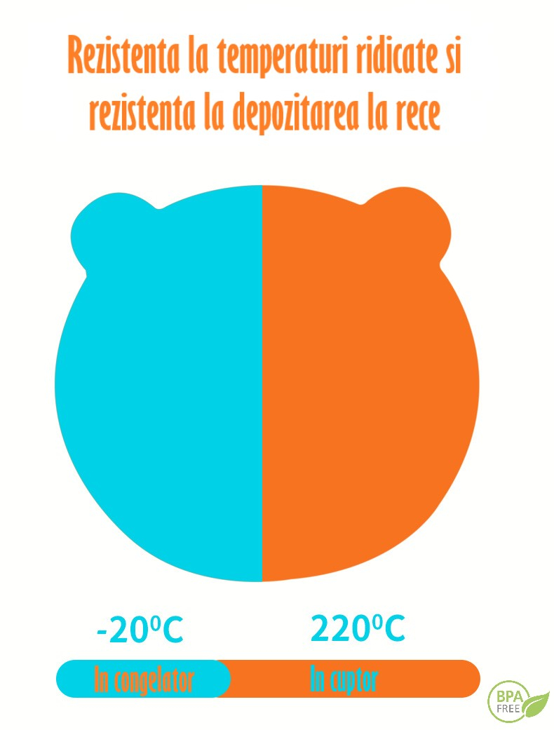 Seturile noastre pentru bebelusi sunt fabricate 100% din silicon alimentar moale, flexibil si durabil, care este bland cu gingiile, dimensionate si proiectate perfect pentru utilizare de catre copii, farfuria si bolul avand o baza puternica de aspiratie si usor de curatat. Credem ca acest set va ajuta la tranzitia catre auto-diversificare si va crea o experienta placuta in timpul mesei!