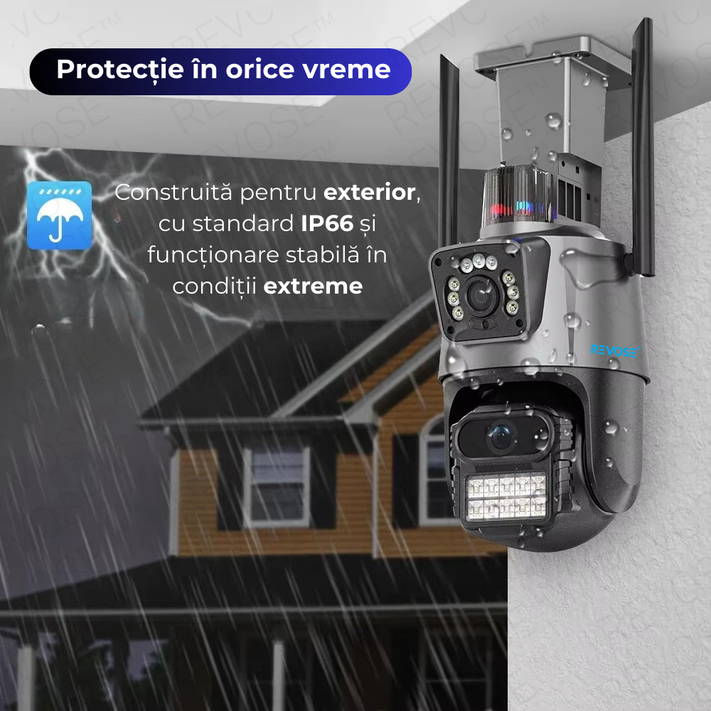 Camera de Supraveghere Video DualLens REVOSE™ 6MP, Aplicatie Dedicata, Intelligent Tracking, PTZ, WIFI, Lan, AP hotspot, Micro SD, Rotire, Senzor si Alarma miscare, Comunicare Bidirectionala, Exterior