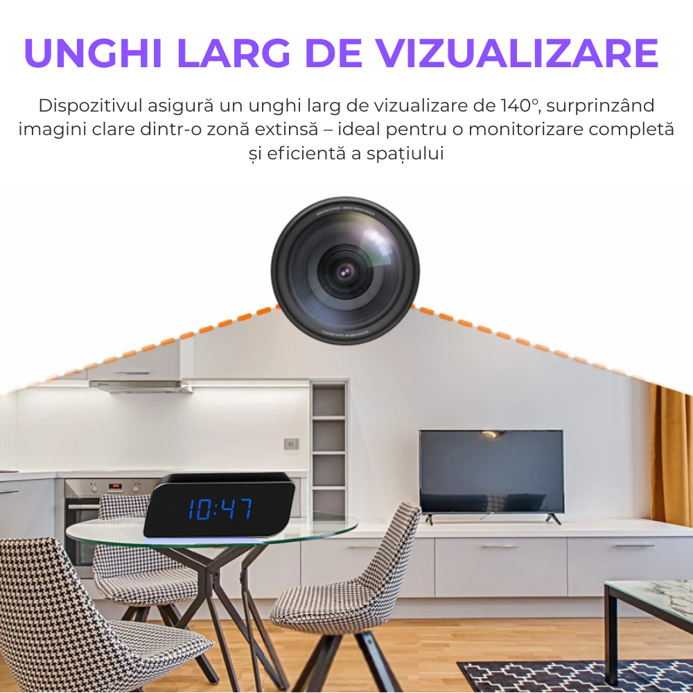 Discretie completa: Camera REVOSE™ este perfect ascunsa intr-un ceas desteptator complet functional, facand imposibila detectarea ei. Este solutia ideala pentru supraveghere neobservata in orice spatiu, indiferent de destinatie.