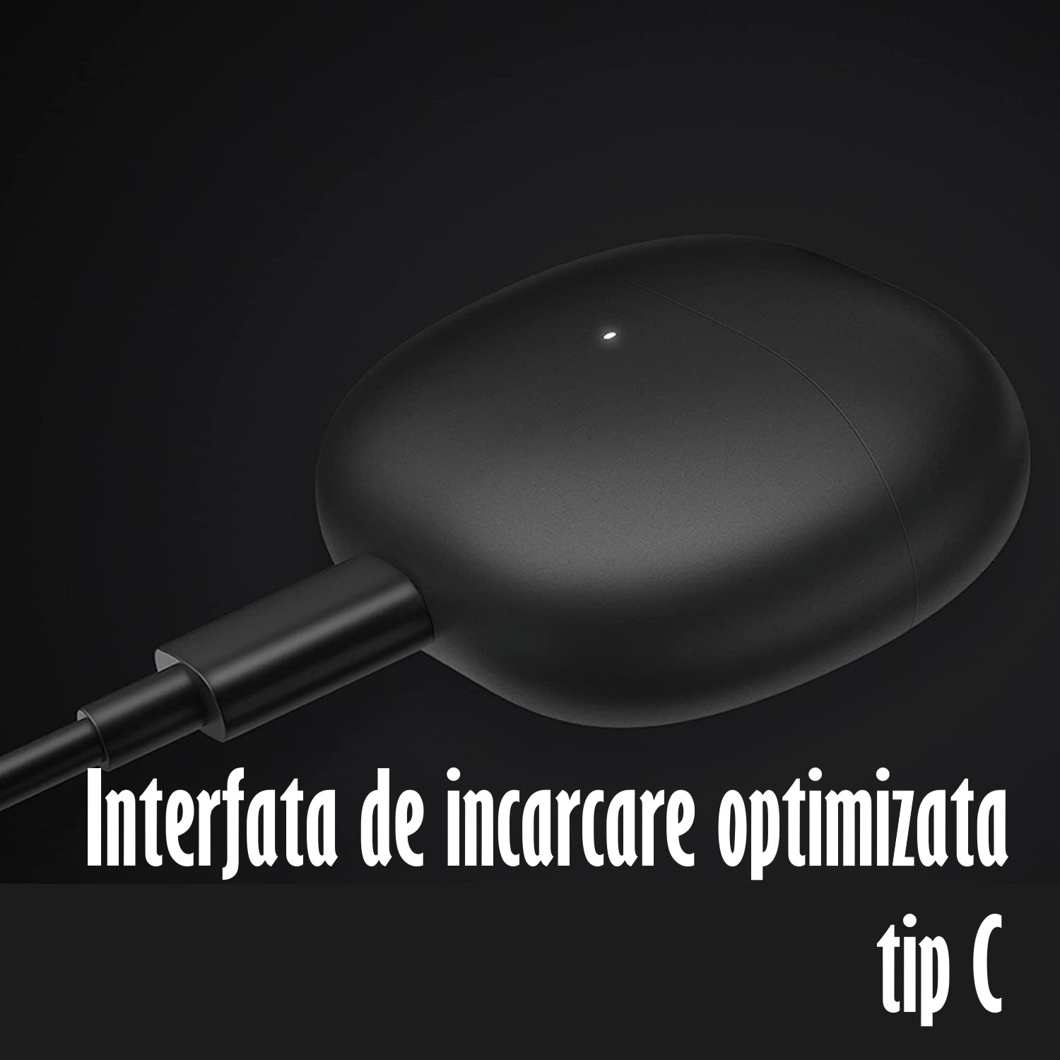 Port de incarcare tip C - o singura incarcare este suficient pentru pana la 5 ore de utilizare. Performanta remarcabila, fara griji - faceti exercitii fizice, ascultati muzica, vizionati filme, si va puteti bucura de convorbiri telefonice de lunga durata.