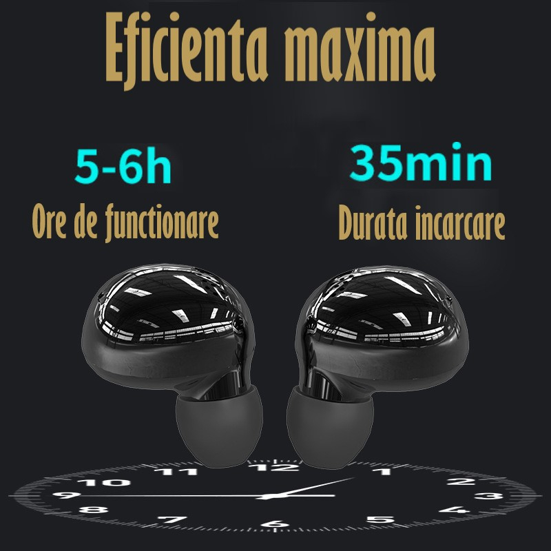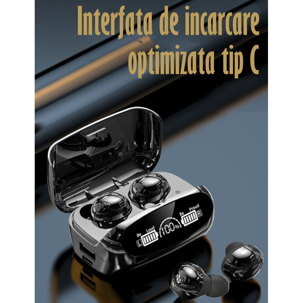 Casti Audio Wireless fara fir, Bluetooth 5.1, tip Earbuds cu Control Touch, Microfon, Noise Cancelling, True Wireless Stereo, tip Earpods Telefon, Universale, Carcasa magnetica, Black