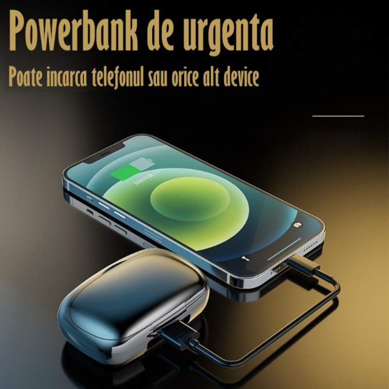 [110+ ore de redare, cu caseta de incarcare cu rol de powerbank portabil de 3500mA]