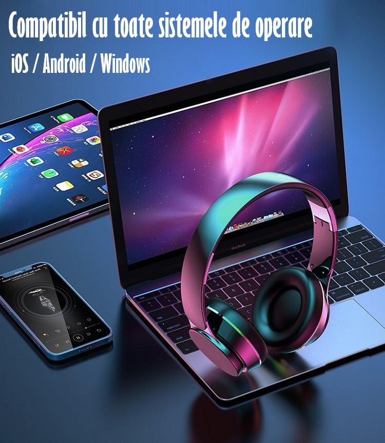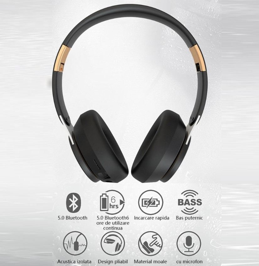 Casti wireless pliabile, Microfon incorporat, Bluetooth 5.0, Bass Stereo