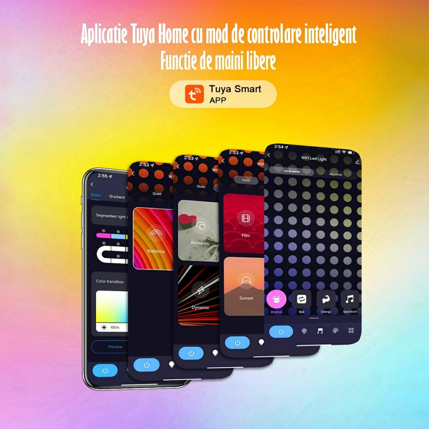Controleaza luminile prin aplicatia Tuya Smart , 16 Millioane de culori, 200 + moduri de iluminare, Sincronizare muzicala, functioneaza cu alexa, google assistant